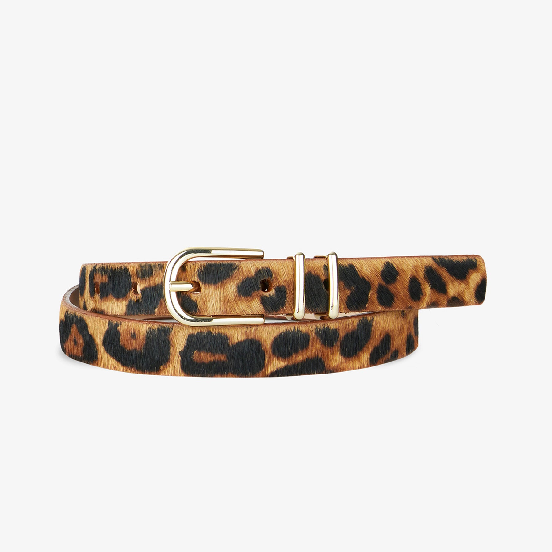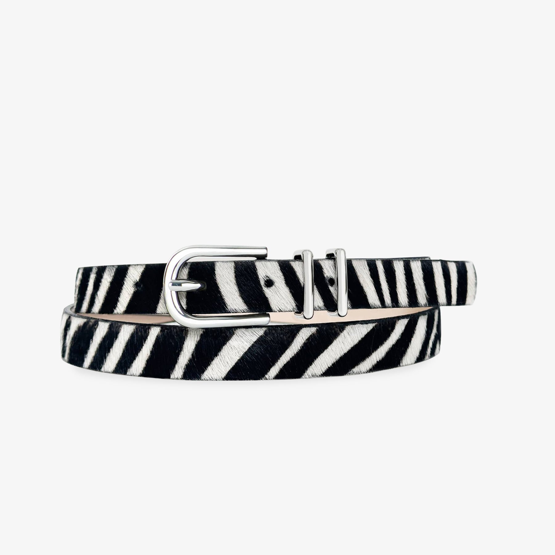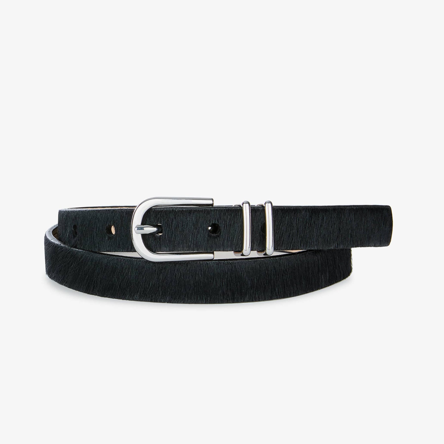 Add a chic dose of style with the Julane Belt. Julane is designed with a modern polished buckle and double keeper on a slim hair-on strap. Pair with denim and trousers.