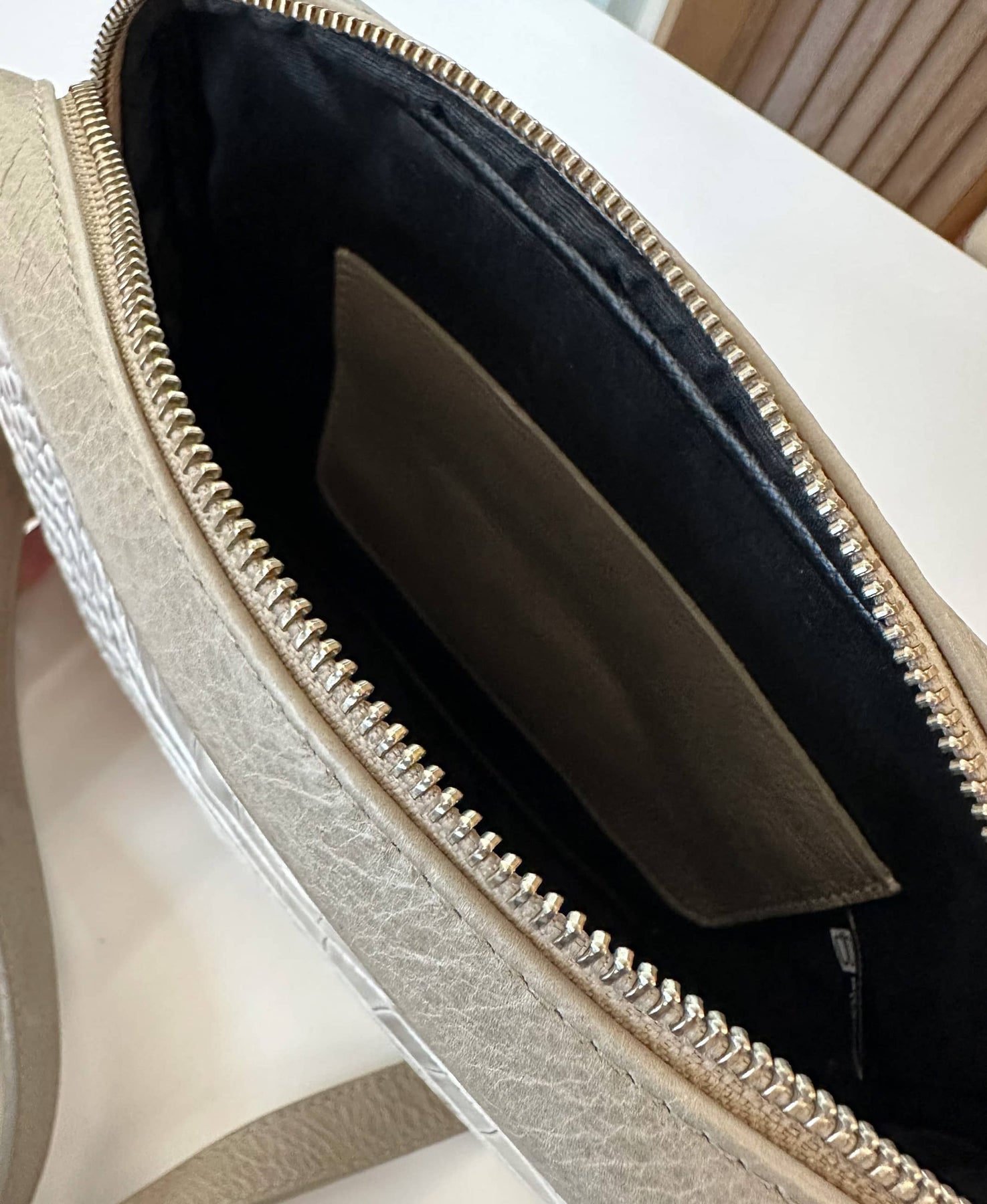 This leather begins with the finest full grain Italian skins, the croc embossed vegetable tanned skins are pigmented and lightly finished on the surface to produce a very even and elegant pattern. An excellent choice for a chic modern look.