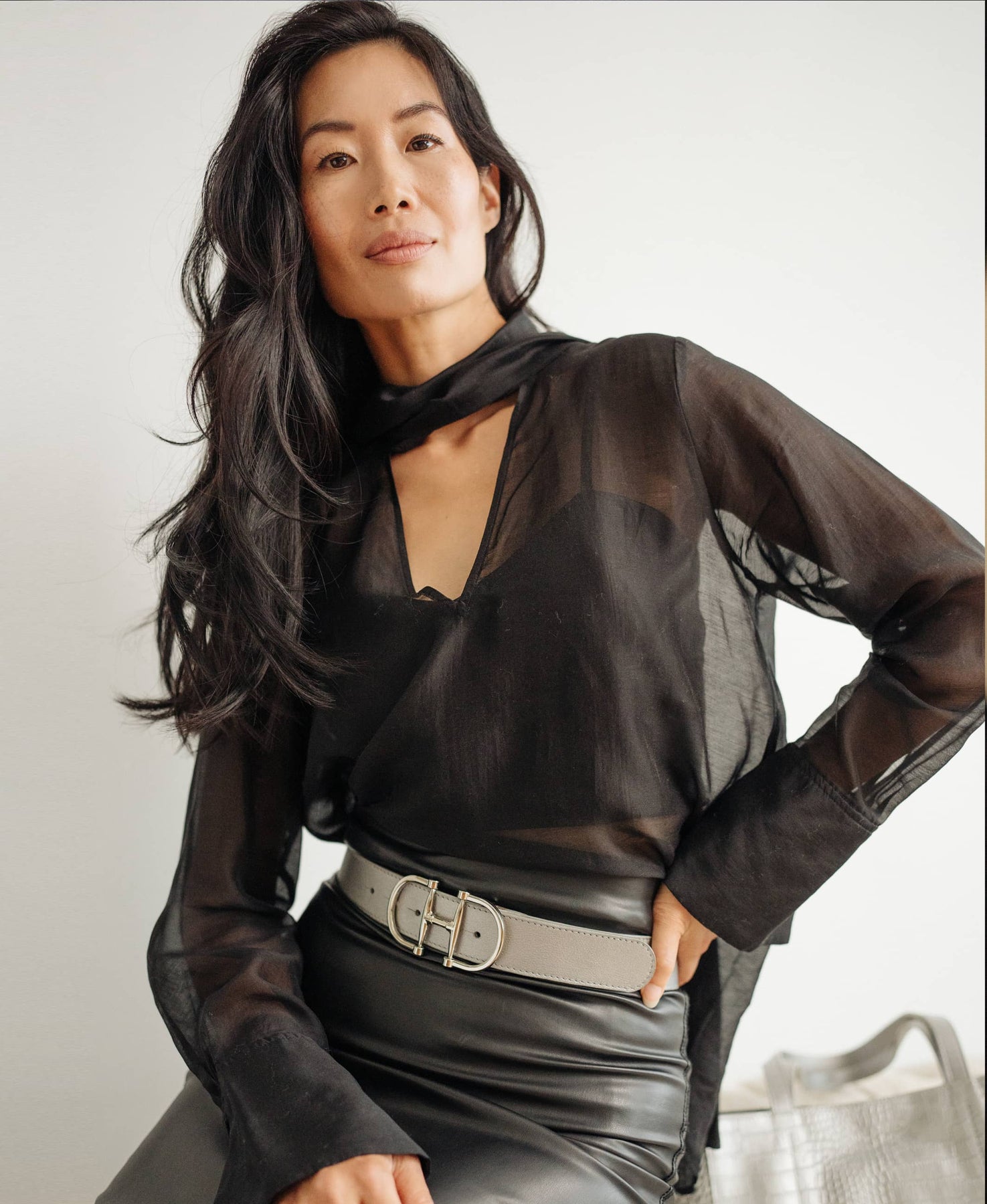 - Polished buckle hardware