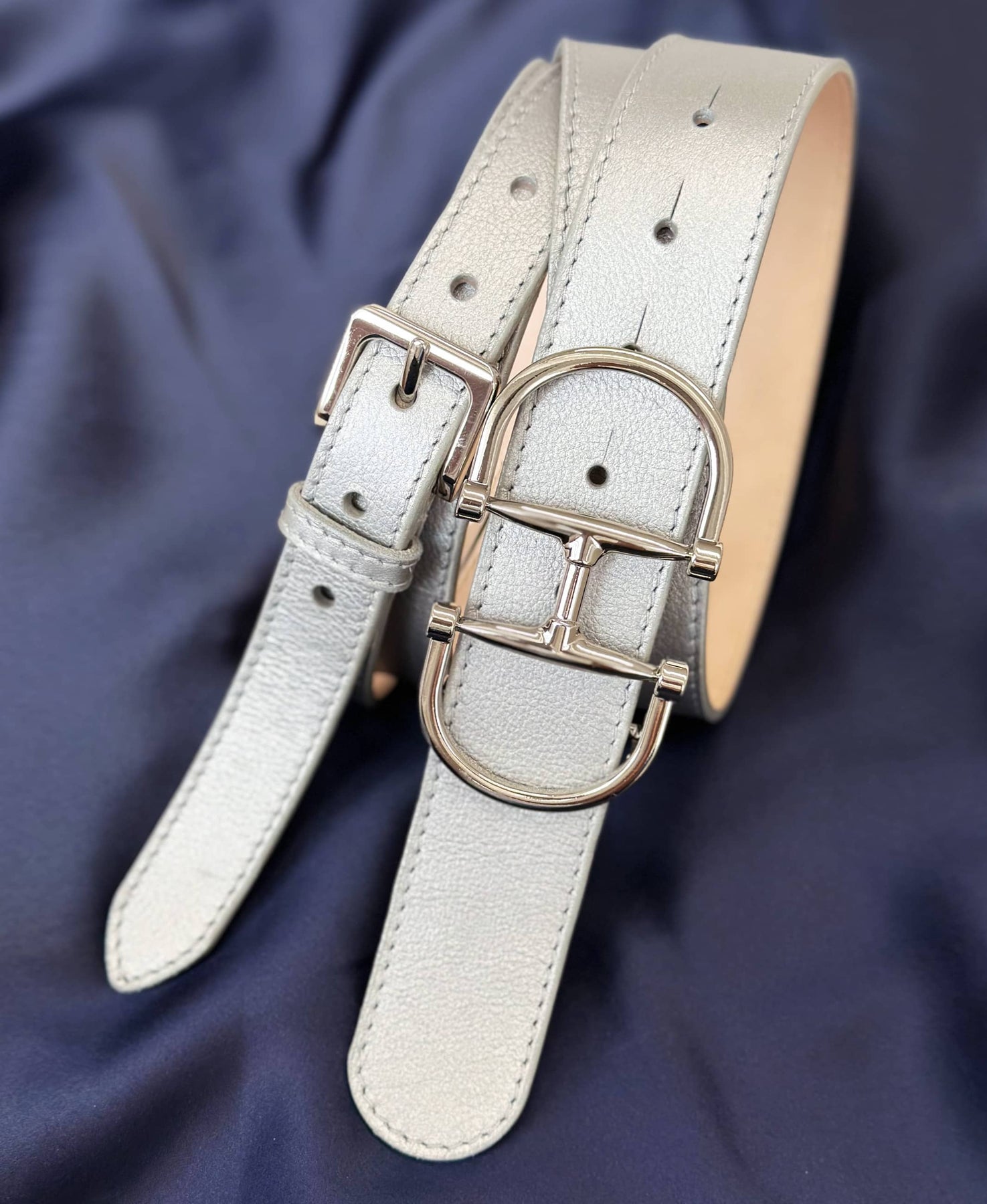 A classic equestrian buckle secures a pebbled metallic leather strap. Choose your favourite for a wardrobe update. The perfect add-on to any outfit to always look stylish and on trend.